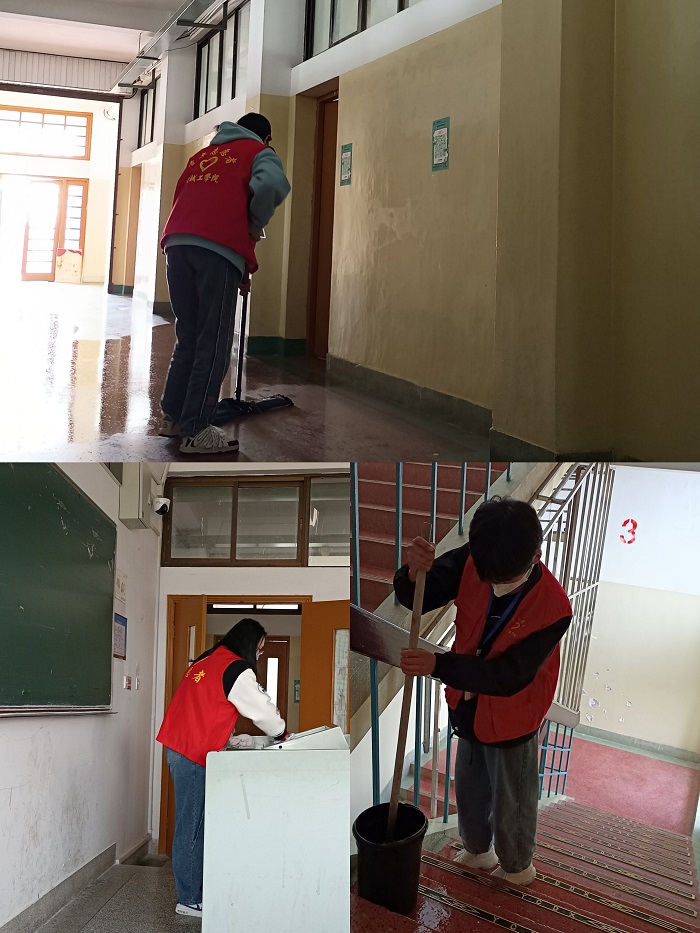 为营造“疫情防控,人人参与”的氛围,也为线下上课做好准备,3月3日下午,我校青年志愿者们与保洁阿姨一起,在希望大道校区和建军路校区教学楼开展教室清扫消毒志愿服务工作。