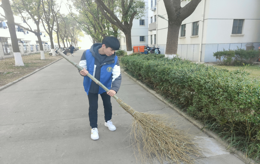 B生物191班的周秀秀同学甩甩胳膊说:“一个寒假没活动了,我出了好多汗,不过看着自己打扫干净的宣传栏,很有成就感!”大一的张妍同学说今天才感觉到校园卫生保洁工作不容易,保持学校的干净卫生需要大家一起努力。大四的尹根同学在大学期间参加过多次学院的志愿服务活动,锻炼了自己的意志与责任担当,她也在去年年底成功通过了江苏省委选调生的考试,毕业后将在工作岗位上继续践行责任担当。她说:“作为青年一代,我们要将习总书记对青年的号召落到实际行动中,担负时代使命,在担当中历练,在尽责中成长,这是我理解的新时代的雷锋精神。”