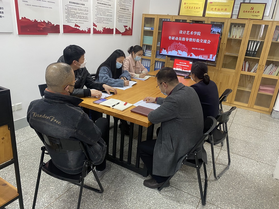 3月30日下午,在希望大道校区润美楼A306会议室,设计艺术学院举办线上考研动员指导暨经验交流会。党总支书记胡凌霞、副院长王文广、产品设计系主任钱峰,学工办、团委负责人出席,2021年考取研究生代表唐伟强和全体2019级学生线上参加。会议由党总支副书记杨士卿主持。