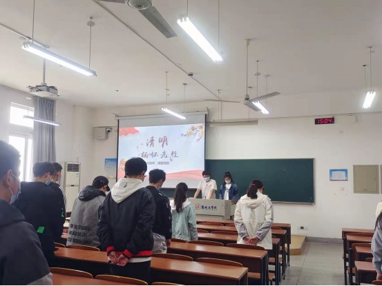 4月5日下午,在博学楼D509,数理学院团委组织2021级全体学生开展了以“缅怀英烈·致敬英雄·砥砺前行”专题团课活动。本次活动严格遵循学校防疫政策,采取线上线下结合的方式开展。