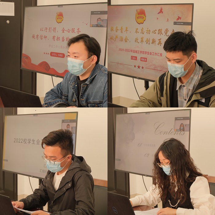 汇报会上,14位团属主要学生干部分别从工作理念、工作规划、工作举措等方面汇报了2022年度的工作计划。各组织负责人从深化学习、强化责任、优化组织、细化服务等方面提出了本组织的工作思路,力求在2022年度的各项学生工作中进一步提升政治站位高度、加大组织改革力度、扩大引领服务广度。学生会主席团成员韦琰霖以“以行引领,全心服务——做有信仰、有担当的学生干部”为题做了学生会工作心得分享。他号召所有的学生干部要发扬好“党有号召,团有响应”的优良作风,担负好“争当表率、争做示范、走在前列”的青春责任,全心全意为同学服务,建设好“盐粒子”身边的共青团。