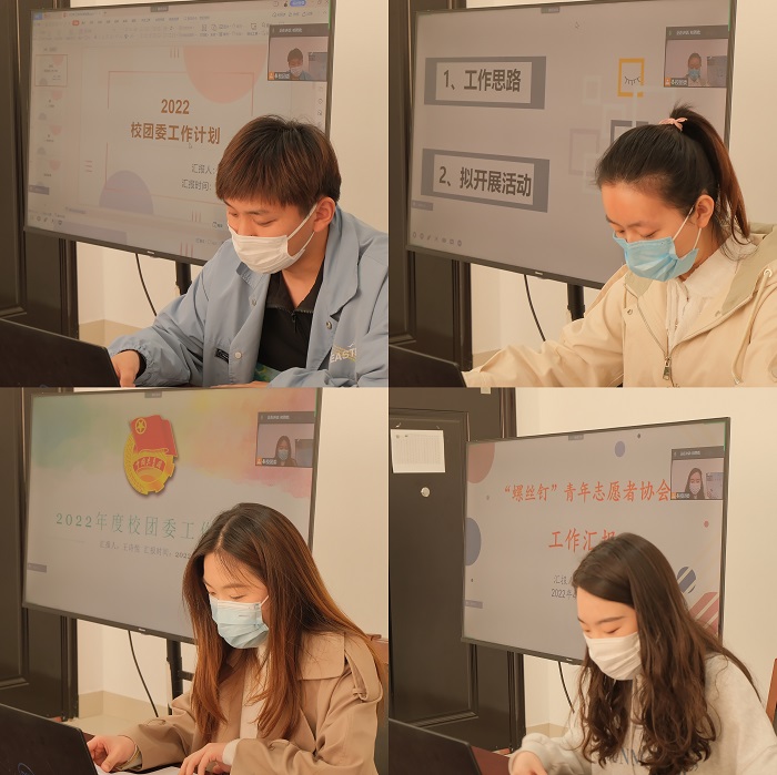 为进一步深化共青团工作、学生会组织改革,切实加强我校团属学生组织建设管理,4月17日,校团委在希望大道校区团委会议室召开2022年春学期团属主要学生干部汇报会,充分发挥学生组织自我管理、自我教育、自我服务的能力,促进学生组织健康有序发展。校团委书记杨秀丽,党委学工部、学生工作处副处长刘振海,校团委副书记方璇、全体工作人员,团属学生组织负责人及成员等140余人通过线上线下相结合的方式参加会议。杨秀丽主持会议。