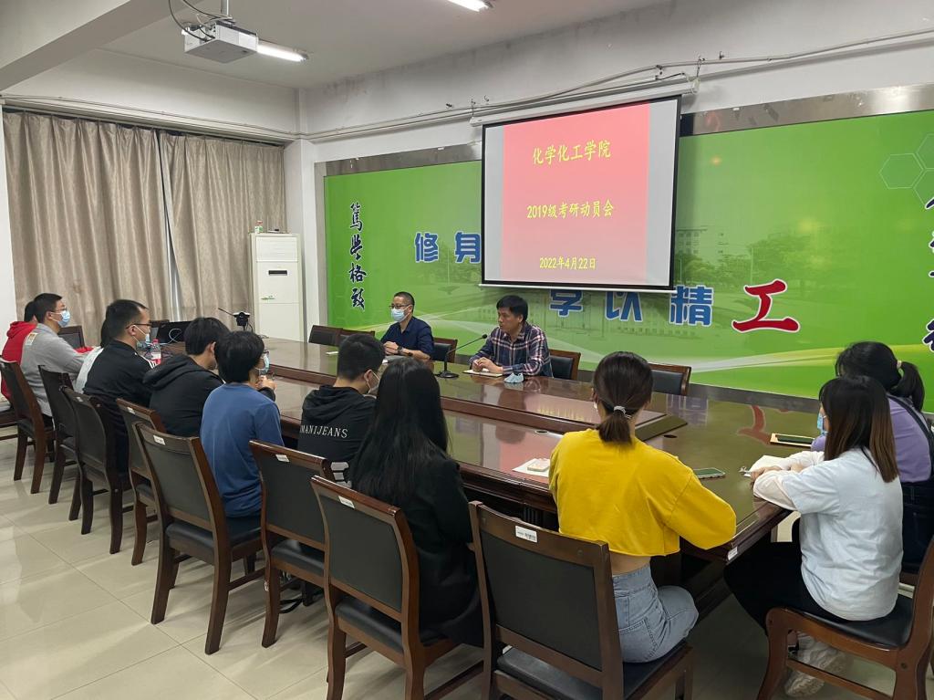 为了充分调动学生考研积极性,提升学生学习专注度,4月21、22日,化学化工学院分三批次召开2019级本科生考研动员会。学院党委书记高健、院长戴勇、专职辅导员和2019级学生参加。高健主持动员会。