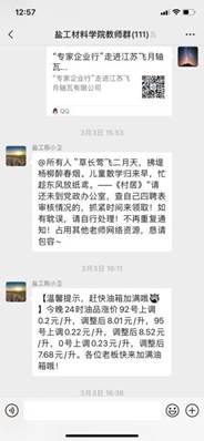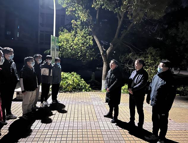 学院组织以党委书记高健、院长戴勇带领三名专职辅导员、一名兼职辅导员和一名志愿者老师形成驻校7人疫情防控工作小组驻守校园疫情防控第一线。高健、戴勇带领化工学院师生党员加强夜间巡查,严查私拿校外快递、快餐学生,严抓翻墙进出学校的学生,筑牢校园防线,守护校园安全,以化院人“学以精工,修身成化”的“硬核”精神奋战“疫”线,体现了新时代党员的情怀与担当。