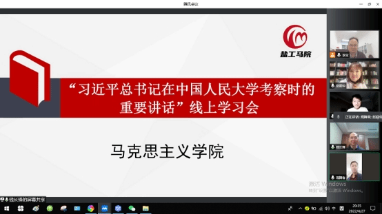 4月26日晚,马克思主义学院召开线上专题学习会,集中学习了习近平总书记在中国人民大学考察时的重要讲话精神。会议由院总支书记、常务副院长钱长锋主持,党总支理论学习中心组全体成员参加。