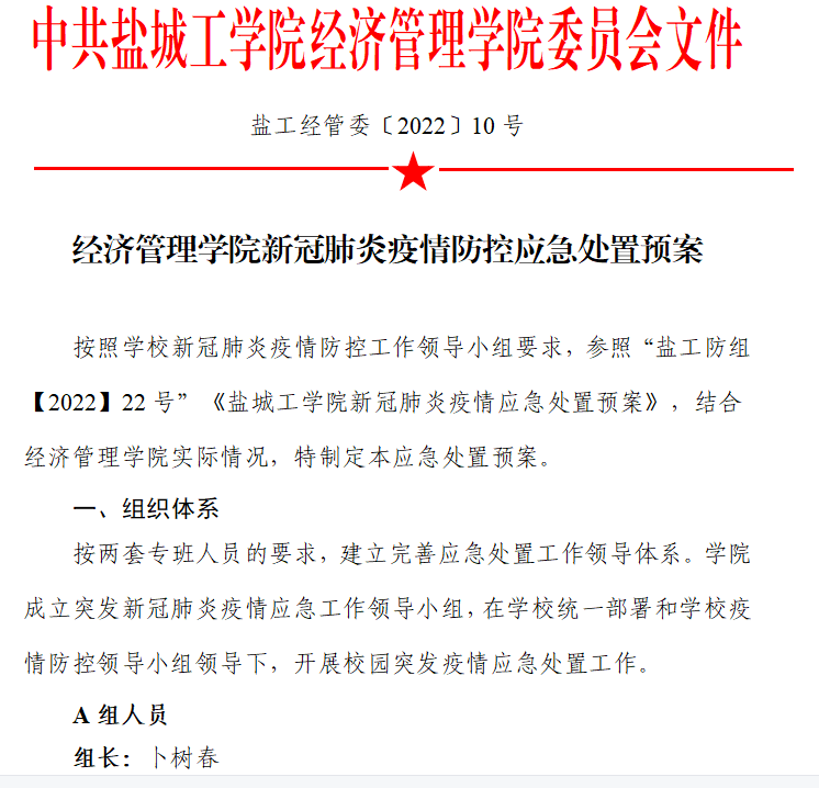 面对疫情防控的严峻形势,经济管理学院党委第一时间成立疫情防控工作领导小组,制定完善《经济管理学院新冠肺炎疫情防控应急处置预案》,开展疫情防控应急处置实战演练,以演促练,以练为战,全面提升疫情应急处置能力,责任到位织密“防护网”。