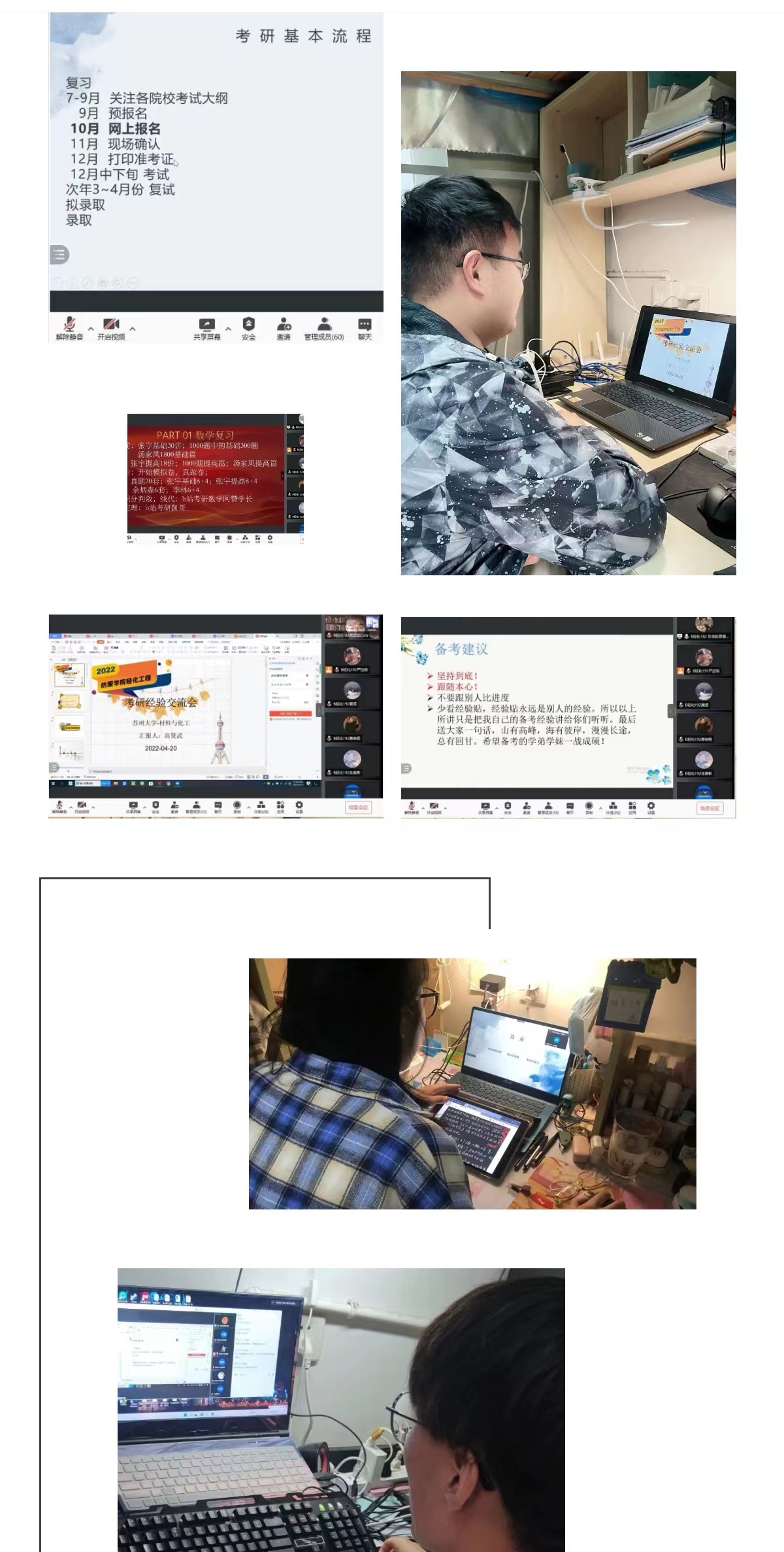 加强学风建设,举办考研经验分享会。为提高19级同学们的考研热情,增强考研信心,明确考研目标,掌握相关考研技巧,学院于2022年4月20日下午三点通过召开腾讯会议分专业举办了考研经验分享会。