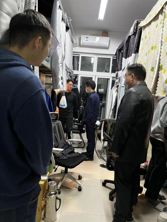 演练结束后,齐金花指出,学工办要进一步完善疫情防控应急处置流程,提高疫情防控工作的管理水平,加强各环节教育培训、不断增强应急意识,扎实做好疫情防控工作。谷文华强调,学生干部和学生党员要积极主动做好学生健康日报、晨午检测温、学生宿舍卫生督查、非必要不网购倡议等工作督查,协助学院织牢防疫工作网,死守校园安全稳定。之后,谷文华、齐金花带领大家走访学生宿舍,了解学生疫情防控、线上学习难点、考研考编计划执行、日常生活卫生等时机情况,并现场回答了同学们关于提高学习效率、考研目标确定等方面的问题。疫情演练活动不仅从疫情防控方面增强了学生的防疫技巧以及应急能力,老师的关怀更让学生在校封闭期间增添了许多温暖。