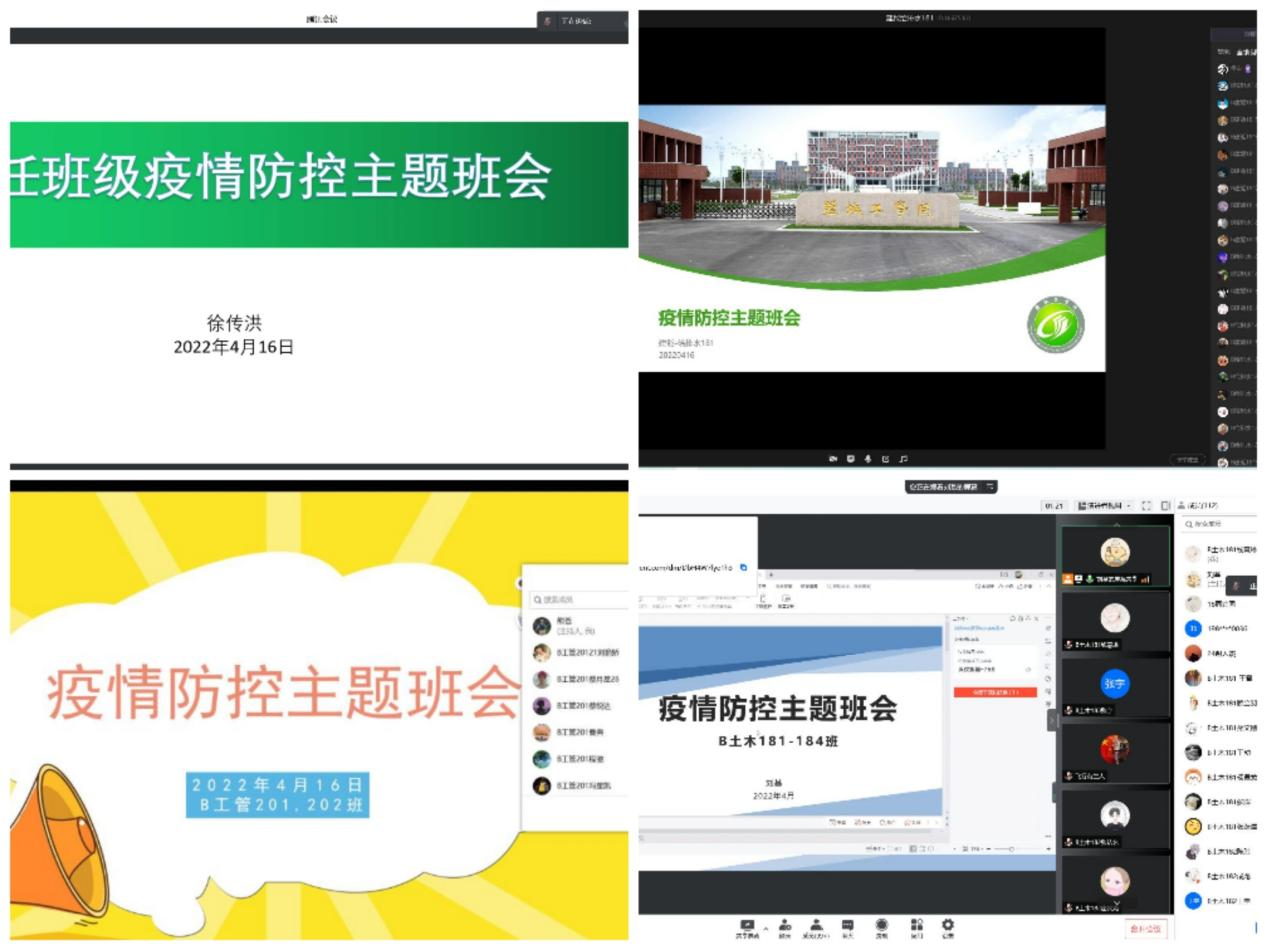 4月15-16日,土木工程学院全体专兼职辅导员以责任班级为单位,通过线上腾讯会议召开疫情防控主题班会。向学生说明了学校当前疫情防控的形势、学校疫情防控部署要求及相关工作措施,特别强调同学们要把生命安全和身体健康放在第一位,遵守疫情防控的相关规定。引导大家正确认识疫情,积极关注疫情动态,加强宣传防疫知识,坚定抗击疫情信心。同时引导学生端正学风,认真完成线上学习任务。