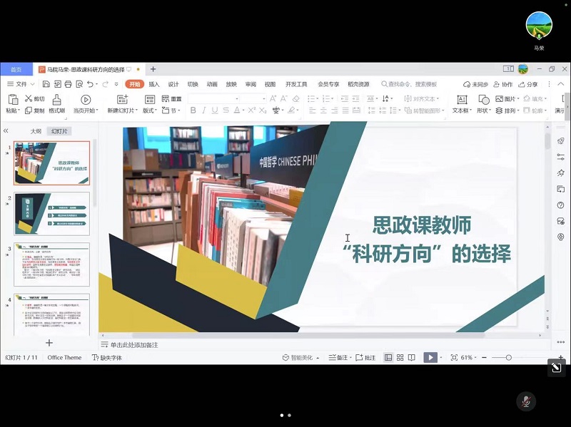 5月11日下午,社科处线上举办青衿学坛系列活动——新进思政课教师专题学术交流会,校党委副书记薛浩出席并讲话,社科处全体人员、马克思主义学院相关负责人、新进思政课教师等25人参加,社科处处长包雅玮主持会议。