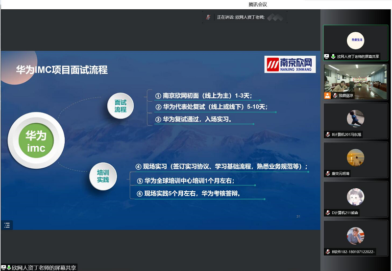 本次推介会采用“线上+线下”同步进行的方式开展,现场邀请立铠精密科技(盐城)有限公司、格瑞利(江苏)智能科技有限公司2家公司宣讲,同时利用腾讯会议,组织是石科技(江苏)有限公司、江苏莫比嗨客智能科技有限公司、丘钛科技(集团)、南京欣网通信科技股份有限公司、罗伯泰克自动化科技、昆岳互联环境技术(江苏)有限公司等6家企业给学生宣讲并与学生交流。目前有近20名学生与用人单位达成初步就业意向。
