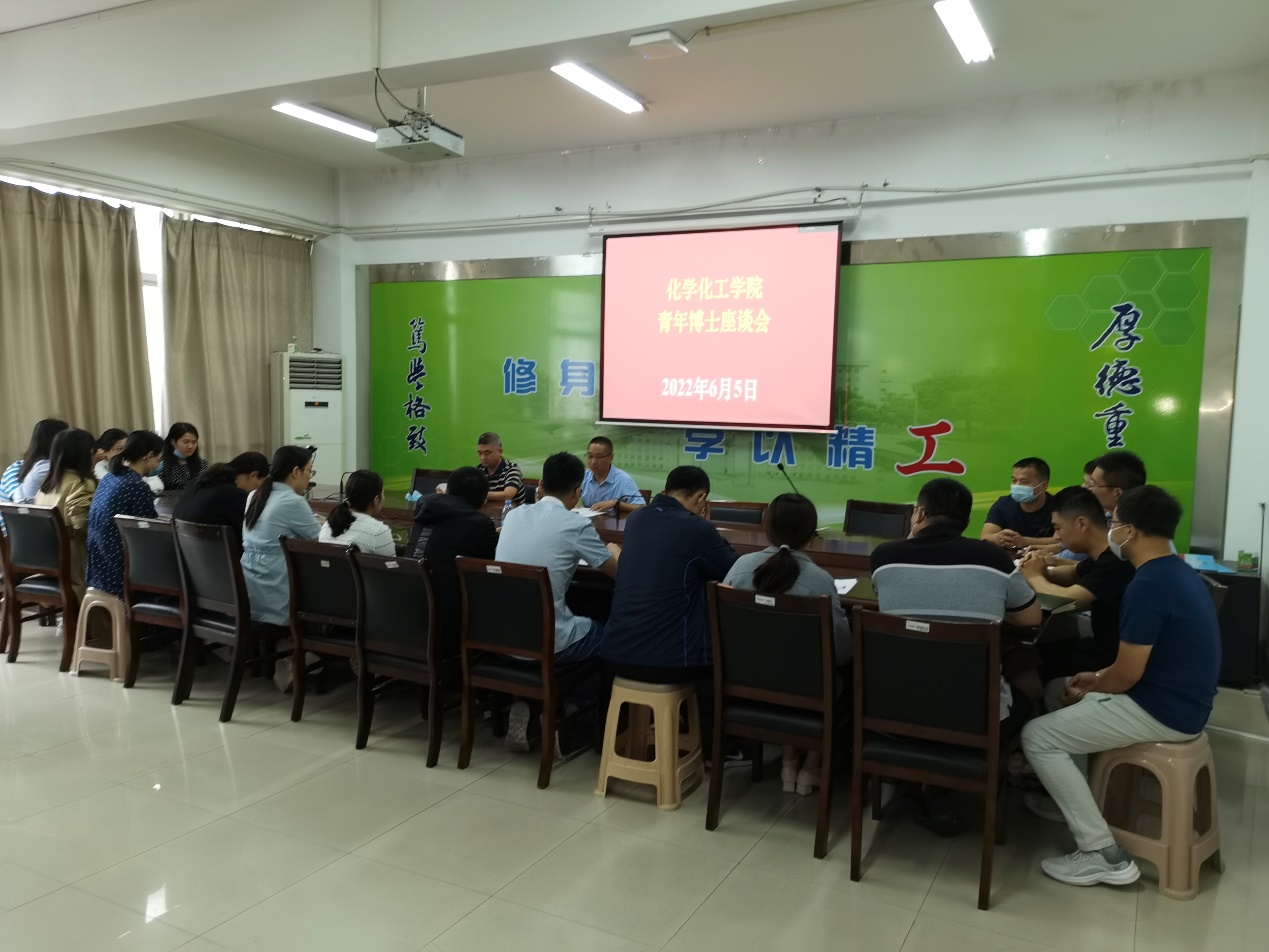 6月5日上午,化学化工学院在北校区学院201会议室召开近三年新引进博士座谈会。学院院长戴勇主持座谈会,学院副院长祁刚和近三年新引进的博士参加。