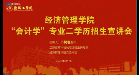 6月7日,经管学院通过腾讯会议平台举办“会计学”专业二学历招生宣讲会,学工办、团委负责人、2021级辅导员,经管学院、外国语学院、纺服学院等学院部分2021级非财会专业学生400余人参加宣讲会。