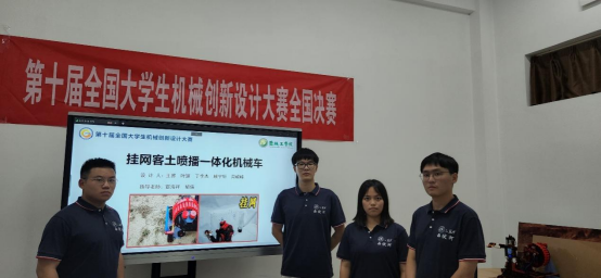8月23日,第十届全国大学生机械创新设计大赛决赛在深圳技术大学落下帷幕,比赛结果在闭幕式现场进行了公布。来自123所高校的200项作品进入全国决赛,这200项进入国赛的作品只占全国省赛切题作品总和的3.7%,代表了全国704所参赛高校5415项切题参赛作品的最高水平。本次决赛分参赛作品视频汇报及线上答辩两个环节进行,机械优集学院学生共斩获一等奖1项、二等奖1项、三等奖1项。由宦海祥、郁倩老师指导,王睿、叶颖、丁李杰、顾宇轩、周峻峰五位同学组队完成的作品《挂网客土喷播机 》荣获全国最高奖项一等奖。
