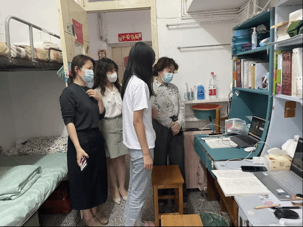 又是一年金秋开学季,为进一步了解新生开学后学习生活情况,贯彻落实疫情防控要求,提高宿舍安全防范意识,9月5日,人文学院党总支书记何登溢,院长周晓燕,党总支副书记姚爱华带领政工人员前往迎宾大道校区走访新生宿舍,表达诚挚的慰问和亲切的关怀。