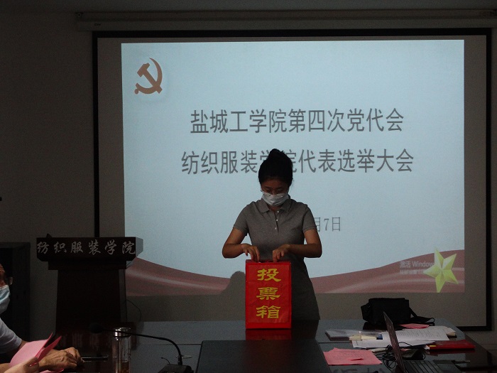 党总支副书记杨军介绍了学院代表候选人预备人选推荐、审核等情况,宣读了《关于同意纺织服装学院党总支报来的出席中共盐城工学院第四次党代会代表候选人预备人选的批复》《纺织服装学院党总支选举出席中共盐城工学院第四次党代会代表选举办法(草案)》。大会采用举手表决的方式通过了《选举办法》(草案)、计票人、监票人名单。经过无记名投票、验票、计票等环节,差额选举产生了纺织服装学院出席校第四次党代会代表5名。