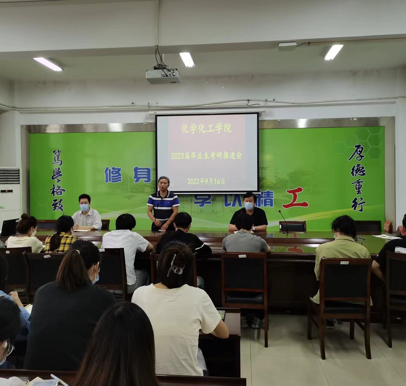 为进一步推进学院学生考研工作,9月16日下午,化学化工学院在学院201会议室开展2023届毕业生考研推进会。应用化学系主任张蓓蓓,制药工程系教授孙国香应邀为考研学生进行目标院校、复习方法、心理调适等方面的指导。推进会由学院党委副书记江滔主持。