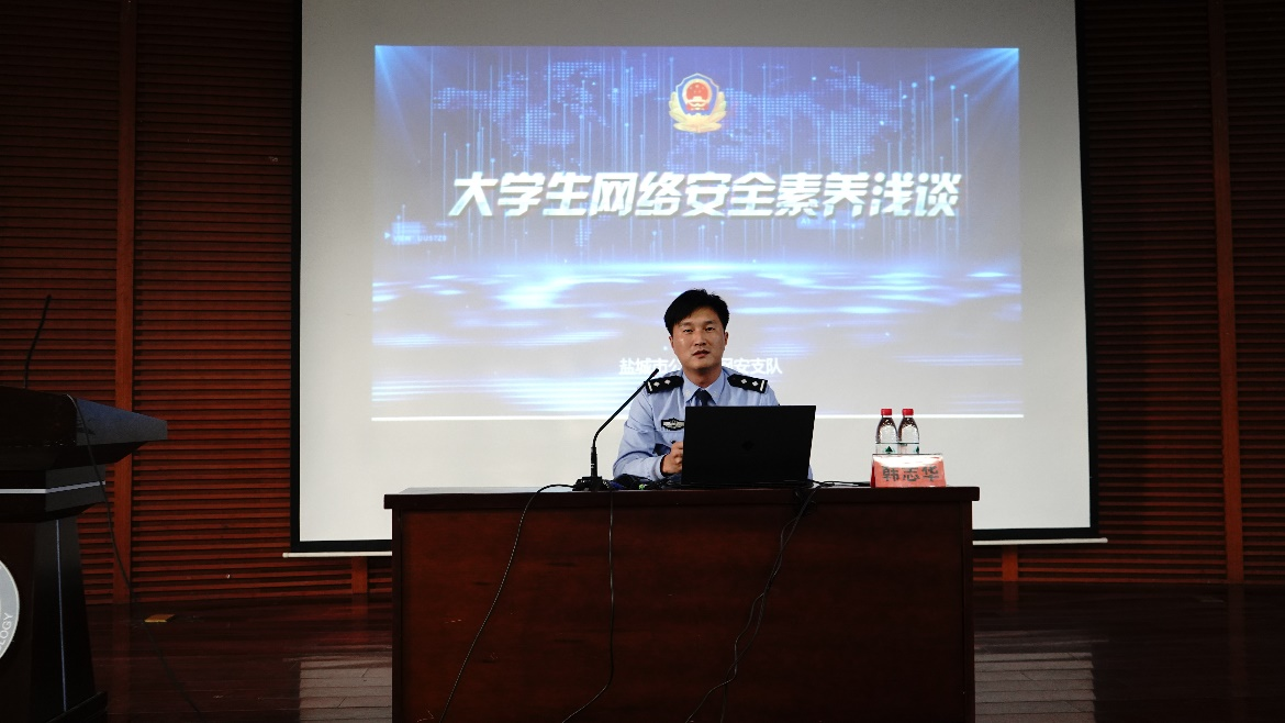 为了倡导新生依法文明上网,增强新生网络安全意识,9月28日下午,设计艺术学院在润美楼报告厅举行2022级新生“大学第一课”之网络安全教育讲座。讲座邀请盐城市公安局网安支队、警务技术四级主管韩志华作题为《大学生网络安全素养浅谈》的专题报告。讲座由学院学工办副主任顾清主持,新生辅导员及全体2022级新生参加。