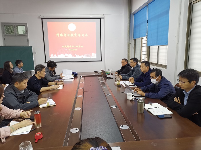 为加强学院教师队伍师德师风建设,增强全体教师教书育人的光荣感、责任感和使命感,营造风清气正的育人环境,10月5日下午,环境学院在建军东路校区大学生活动中心三楼会议室召开师德师风专题学习会,会议由院党总支书记陈阳主持,全体教师参加。