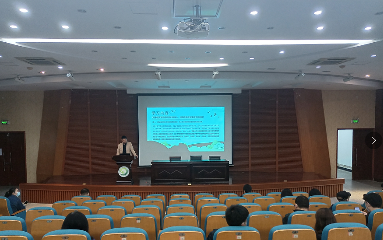 10月5日下午,设计艺术学院在希望大道校区润美楼报告厅召开教职工政治理论学习会,集中学习了《更好把握和运用党的百年奋斗历史经验》《把中国文明历史研究引向深入,增强历史自觉坚定文化自信》《百年大党面对面》《中国共产党的一百年》等内容。党总支书记胡凌霞主持,教工党支部书记钱峰、学生党支部书记顾清领学,全体教职工参加。