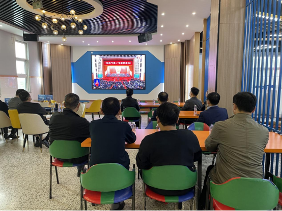 10月16日上午,后勤保障集团党委理论学习中心组在希望大道校区第一食堂二楼多功能厅集中观看中国共产党第二十次全国代表大会开幕会,集团党委书记、总经理张兵组织学习。