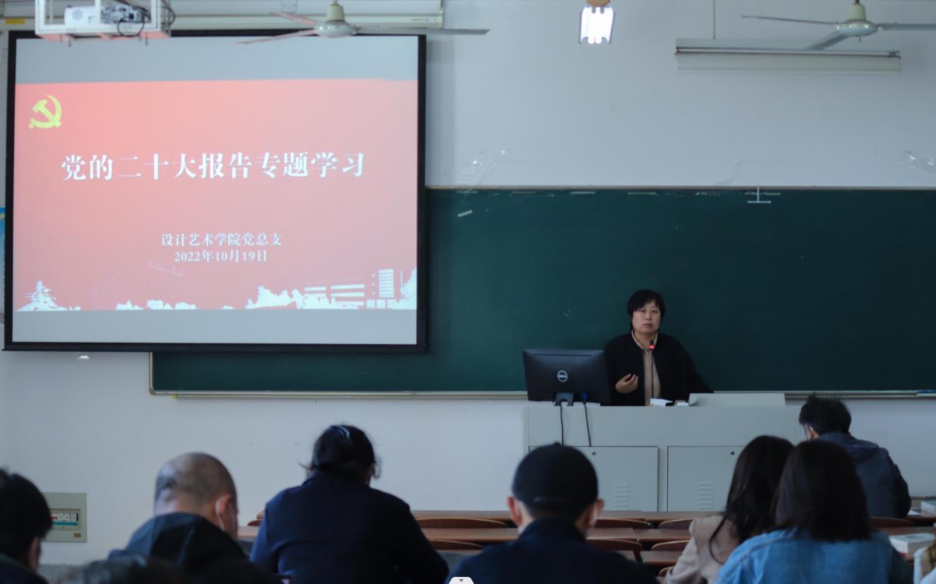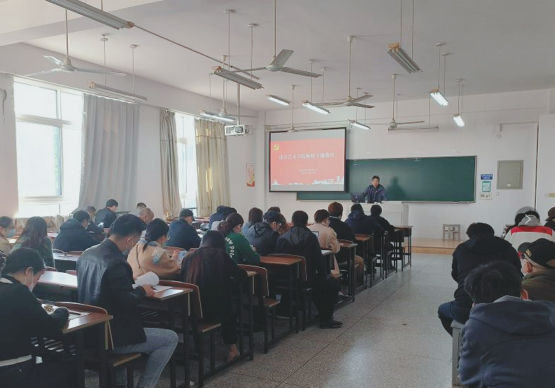 10月19日下午,设计艺术学院在希望大道校区润美楼B301召开教职工政治理论学习会。学习会分为两个阶段,第一阶段由学院党总支书记胡凌霞领学党的二十大报告精神,第二阶段由院长张军开展师德建设专题教育。学习会由胡凌霞主持,全体教职工参加。