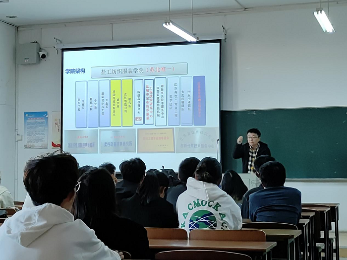 为帮助刚入学的新生快速适应大学学习生活,了解所学专业,削减迷茫情绪,寻找人生新阶段的目标与规划。10月18日至10月20日,纺织服装学院在博学楼1J1A208、1J1D404、1J1D410分专业开展了专业入学教育讲座,讲座分别由纺服学院院长王春霞、副院长周天池,专业系主任柏昕主讲,全体2022级新生以及部分专业系教师参加。