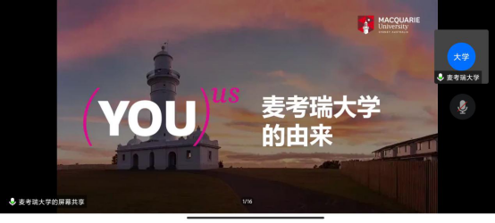10月27日下午,外国语学院组织澳大利亚麦考瑞大学留学项目线上推介会,麦考瑞大学项目合作校方代表、国际招生部经理Jane Huang主讲。学院党总支副书记倪璞主持会议,全体大三大四学生参加。