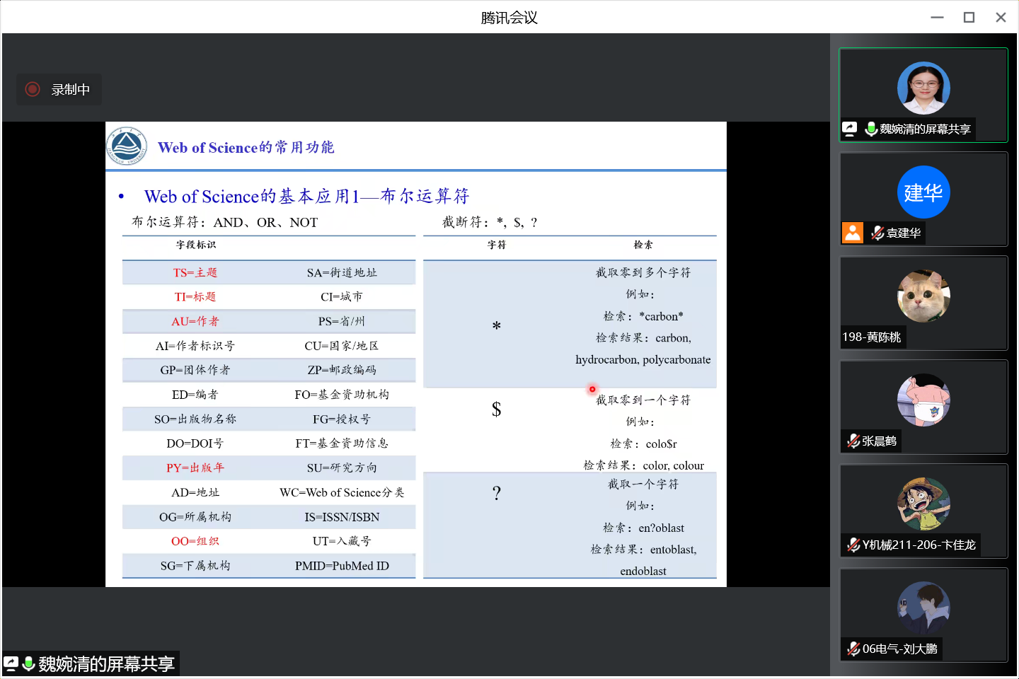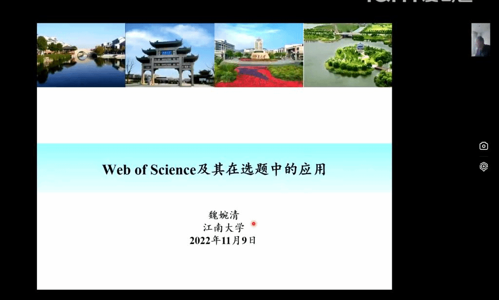 11月9日下午,江南大学副研究员魏婉清应邀为我校研究生作“Web of science及其在选题中的应用”文献检索专题线上报告,研究生工作部副部长刘正华主持报告会,全体在校研究生等参加。