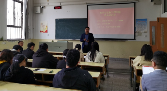 为了进一步提高青年教师教学技能,11月9日上午,海生学院在北校区知行楼511教室组织开展教学观摩活动,江苏省本科高校青年教师教学竞赛(理科组)二等奖获得者张丽博士作《生物化学》课堂教学示范。党总支书记高留才、副院长齐志涛,青年教师和学生代表参加。张丽博士以生动形象的案例、严谨风趣的语言、规范的板书、缜密细致的教学组织给青年教师上了一堂教学公开课,得到现场听课领导及教师的一致好评。随后,学院在知行楼109教室开展青年教师教学研讨。