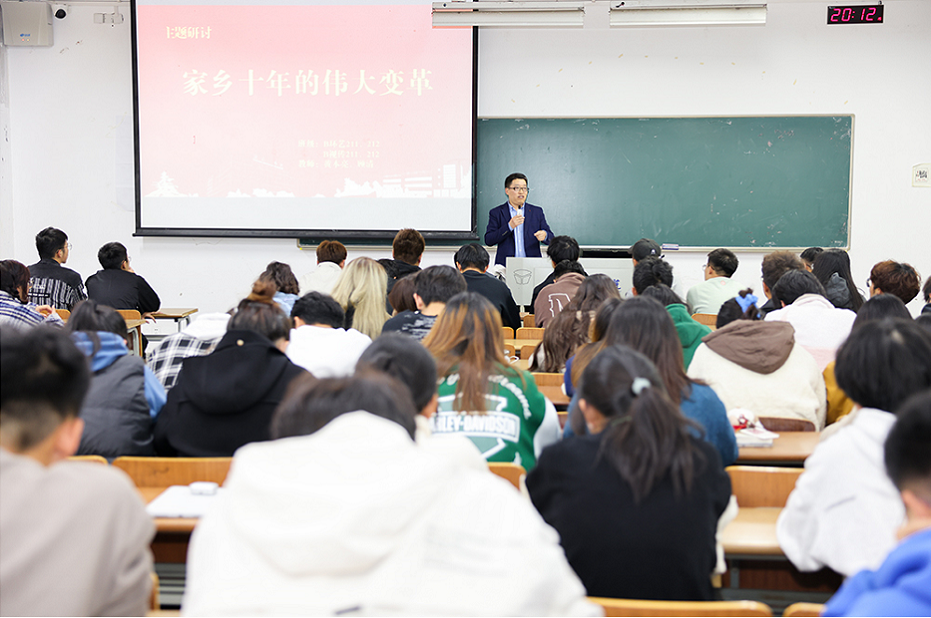二十大胜利闭幕后,顾清带领学生共同学习了党的二十大报告,引导学生深刻理解和把握新时代十年伟大变革的深刻内涵和重大意义。学习结束后,布置了以“家乡十年的伟大变革”为题的主题研讨任务。四个班102名学生自由分组,结合自己经历和感受的家乡十年巨变,采用视频、海报、手绘图等多元艺术表现形式,走上讲台进行汇报展示,分享鲜活事例,畅谈切身感受,台下师生在“沉浸式”体验中感受祖国各地十年发生的伟大变革。