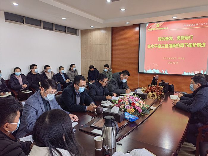 12月14日下午,产业技术研究院在北校区知达楼AE209会议室举办党的二十大精神巡讲会。校纪委委员,院党总支书记、院长严金龙主持会议,研究院全体教职工参加。