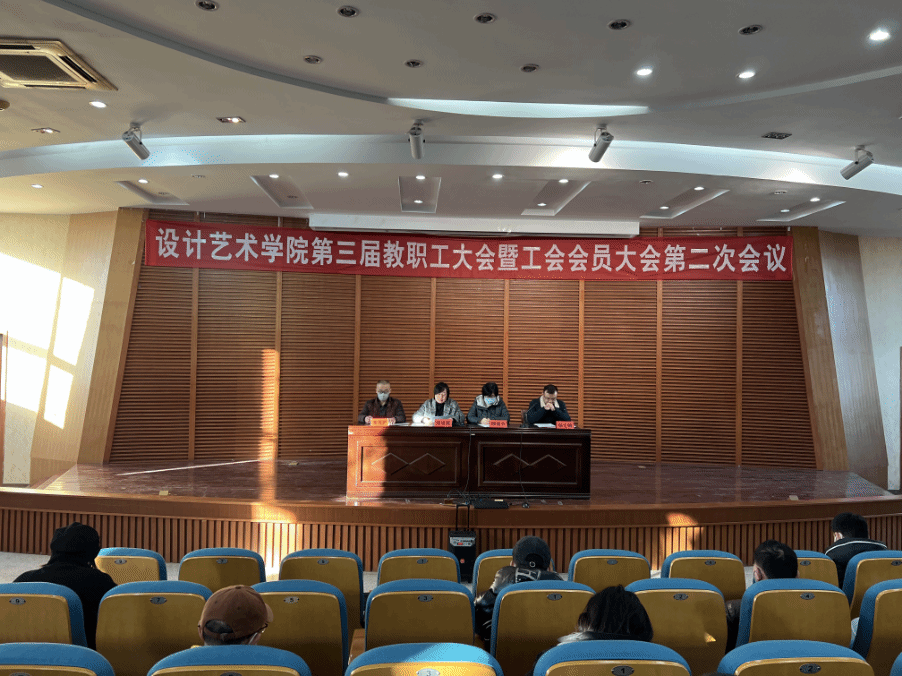 12月14日下午2点半,在希望大道校区润美楼报告厅,设计艺术学院召开第三届教职工大会暨工会会员大会第二次会议。学院党总支书记胡凌霞,副院长顾晓卉、王文广出席,党总支副书记、分工会主席杨士卿主持会议,全体教职工、工会会员参加。
