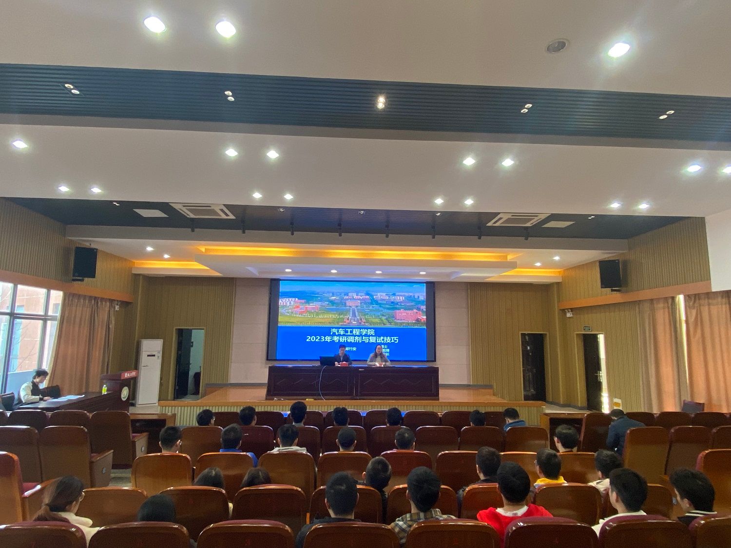 3月7日下午,汽车工程学院在南校区机械馆报告厅召开2023届毕业生考研复试调剂指导会,会议由学院党总支副书记姜华主持,院长助理郑竹安主讲,毕业班辅导员及2023届考研同学参加。