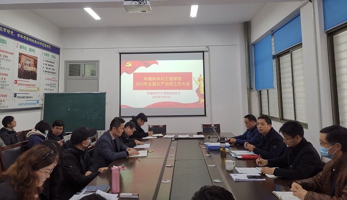 3月22日下午,环境学院在学院会议室召开2023年全面从严治党专题会议。党总支书记陈阳主持会议,学院全体在校教职工参加。