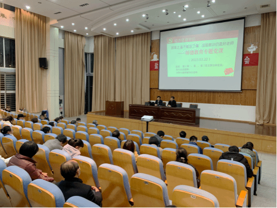 3月22日,经济管理学院在南校区仁和楼报告厅举办师德教育专题党课教育活动,学院党委书记卜树春主讲师德教育专题党课,院长赵永亮领学解读《盐城工学院教师师德失范行为负面清单及处理办法(试行)》,学院全体教职工参加。