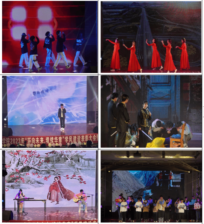 晚会通过舞蹈、歌曲、幕布剧、小品、朗诵等艺术形式呈现出“朝气蓬勃,奋发向上”“无惧艰险,砥砺前行”、“青春献礼,谱写华章”的华丽三部曲,展示了学院2022级新同学如火般的热情,坚定的决心,还有那敢拼敢闯的奋斗精神。最后,朗诵《我的祖国》将同学们的爱国情怀一次又一次地激发,全场掌声雷动,为祖国欢呼,同时也为本场晚会画上了完美的句号。