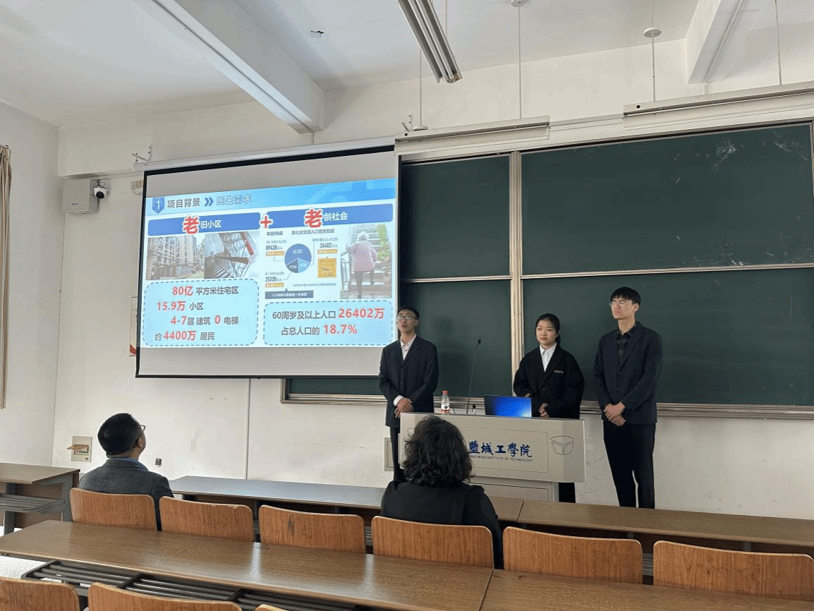 会上,汇报人从项目的研究背景、创新性、实用性以及目前的研究成果等方面对参赛项目《轻车载千物,巧轮助万耆--StairX爬楼配送智慧助老机器人》进行汇报展示。