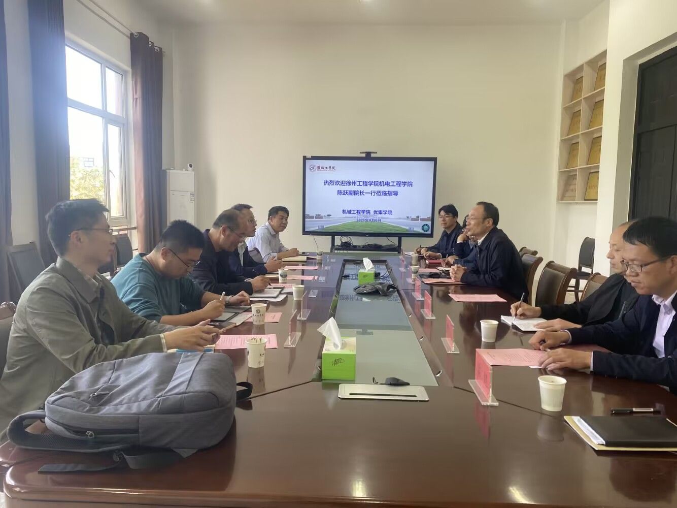 为加强一流专业建设,推进学校学科专业的高质量发展和专业结构的优化调整。5月9日下午,徐州工程学院机电工程学院副院长陈跃带领学院专业系主任到我校机械优集学院开展专业建设交流活动。机械优集学院院长周临震、副院长陈青以及专业系主任、课程组主任、实验中心主任等参加交流会。