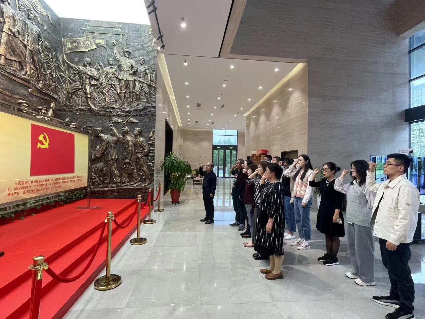 大家在讲解员的带领下,深入了解了盐阜儿女前赴后继、顽强奋斗的英勇事迹,真切地感受到革命先烈们坚定的信仰,执着的追求,不懈的努力,舍身报国的伟大精神。教工一支部书记蒋继华带领大家一起重温入党誓词,回忆入党初心,凝聚奋进力量。