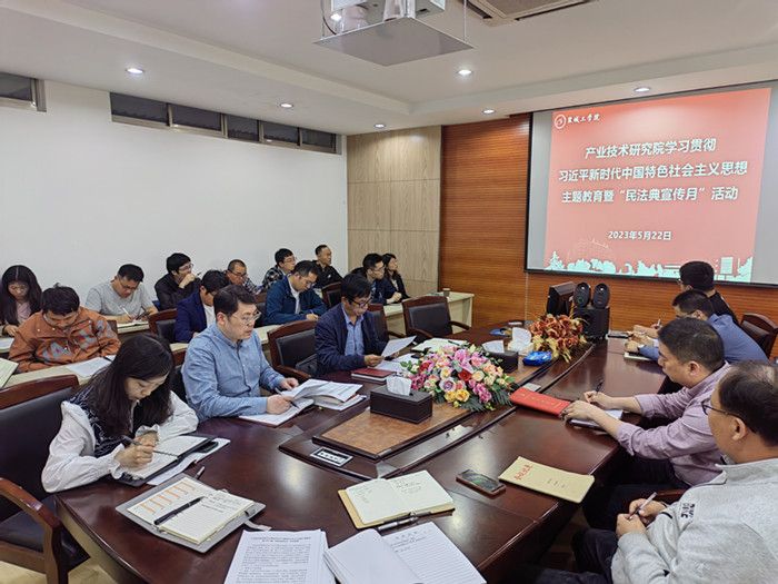 5月22日下午,产业技术研究院在北校区知达楼AE209会议室组织开展学习贯彻习近平新时代中国特色社会主义思想主题教育会议暨“民法典宣传月”活动。研究院党总支书记、院长严金龙主持会议,研究院全体教职工参加。