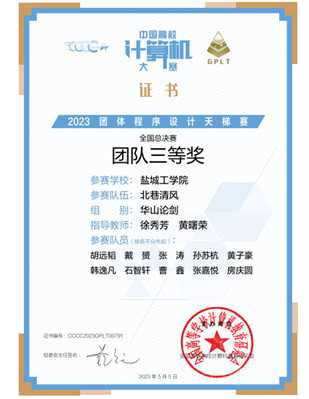 我校信息工程学院经过选拔的20名队员,在学院教师黄曙荣、徐森、徐秀芳的悉心指导下积极组织训练,锻炼选手的分析问题和算法设计能力,提升队伍的竞争力和契合度,最终在本次赛事的线上比赛中取得佳绩。其中,“北巷清风”队在全国总决赛“华山论剑”组中荣获团队三等奖、江苏省团队二等奖,“代码力量”队荣获江苏省团队三等奖。同时,2020级计算机科学与技术专业戴赟、2020级人工智能专业张涛和2021级人工智能专业黄子豪三位同学荣获全国总决赛个人三等奖。
