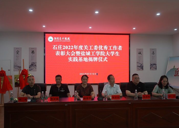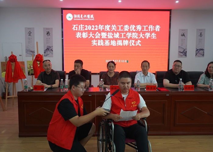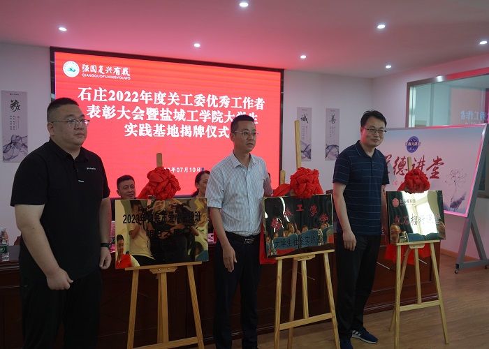 石南社区“明日之星”爱心暑托班发起人、我校“砼心苑”一站式学生社区夏唯壹同学作交流发言。陈广正与柳张峰互签盐城工学院大学生社会实践基地共建协议书。朱凌、陈广正、陈明锦共同为盐城工学院大学生社会实践基地、如皋市爱心暑托班明日之星(石庄站)及红石榴籽课堂揭牌。