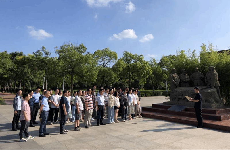 现场学习教育中,教师们来到铁军广场前,王爱军带领大家一起学习高校教师职业行为十项准则等内容,通报了违反教师职业行为十项准则典型案例,并对教师们提出遵守职业道德行为规范的要求。