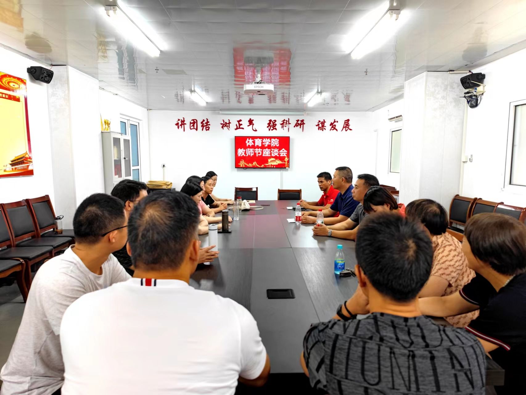 9月7日下午,在教师节即将来临之际,体育学院在南校区风雨操场会议室开展欢庆教师节座谈会,党总支书记杨汉华主持,学院20余人参加座谈。