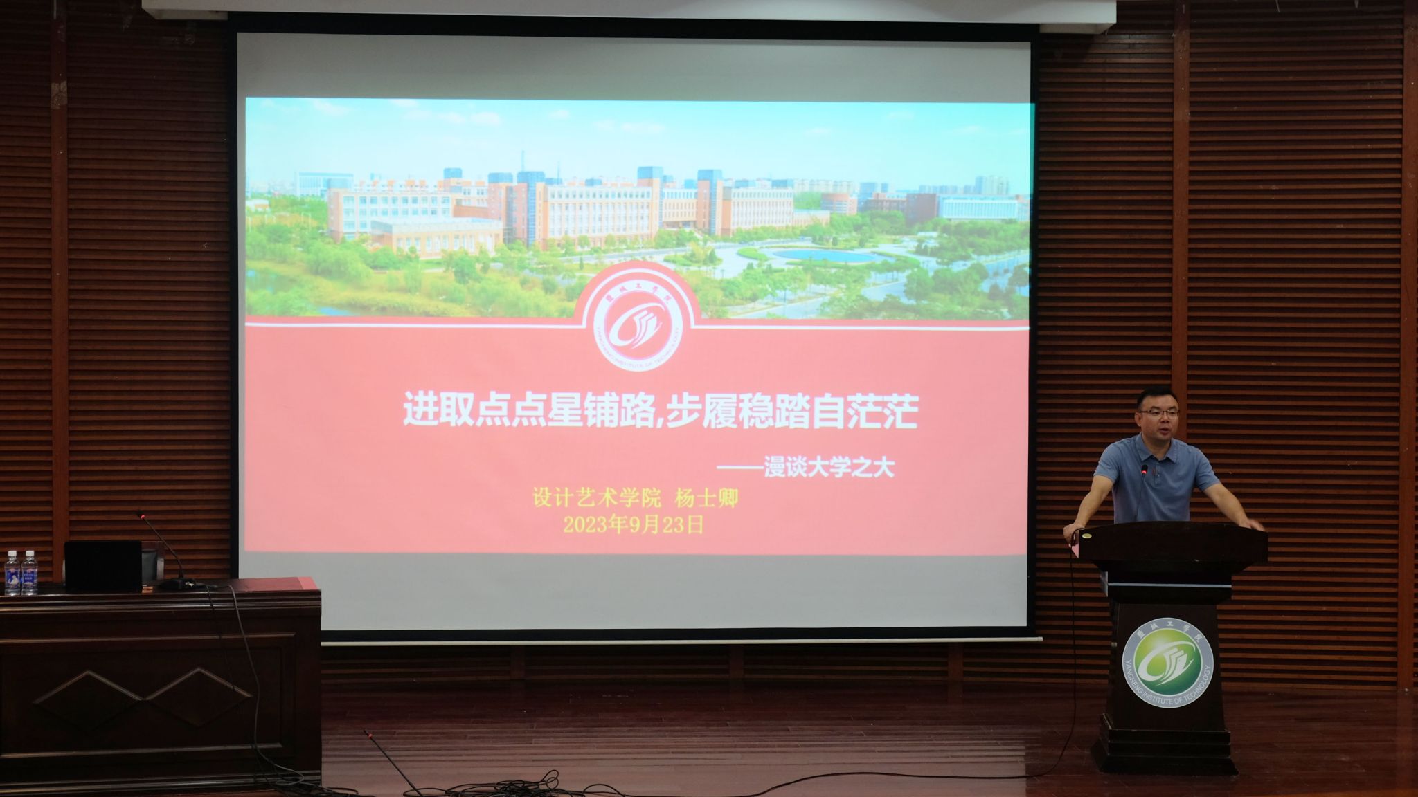 杨士卿结合最新修订的《盐城工学院学生管理规定》,重点对校园秩序与课外活动、奖励与处分两部分内容进行解读,引导学生自觉遵守校纪校规,共同维护校园秩序。随后,他以“漫谈大学之大”为题,与广大新生交流分享如何理解大学、如何读书及读什么书等内容,希望设艺学子们既能“进入专业”,又能“走出专业”,真正开创出“沉潜、创造、酣畅、自由”的学习和生活状态。
