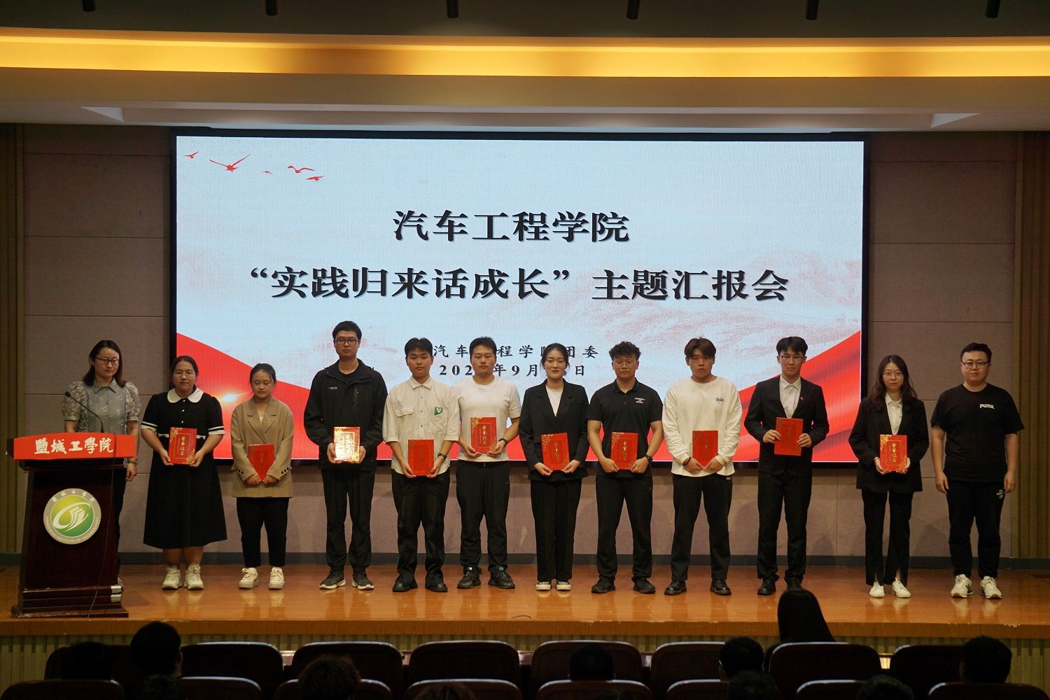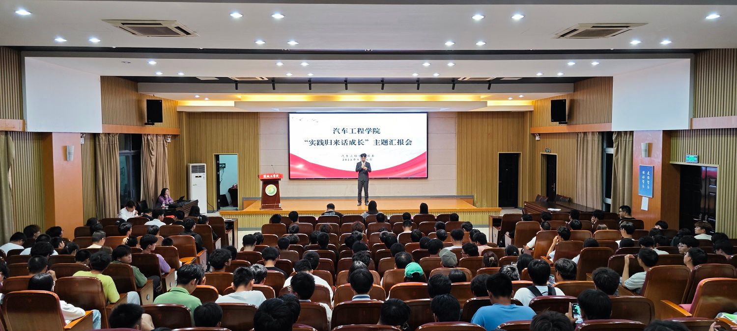 为充分展示暑期社会实践优秀成果,积极引导青年大学生知行合一、开拓奋进,9月26日晚,汽车工程学院在南校区机械馆报告厅举办2023年“实践归来话成长”暑期社会实践成果汇报会。学院党总支副书记姜华、团委副书记孙进及全体辅导员出席,2023级新生及大二、大三年级学生代表等300余人参加。