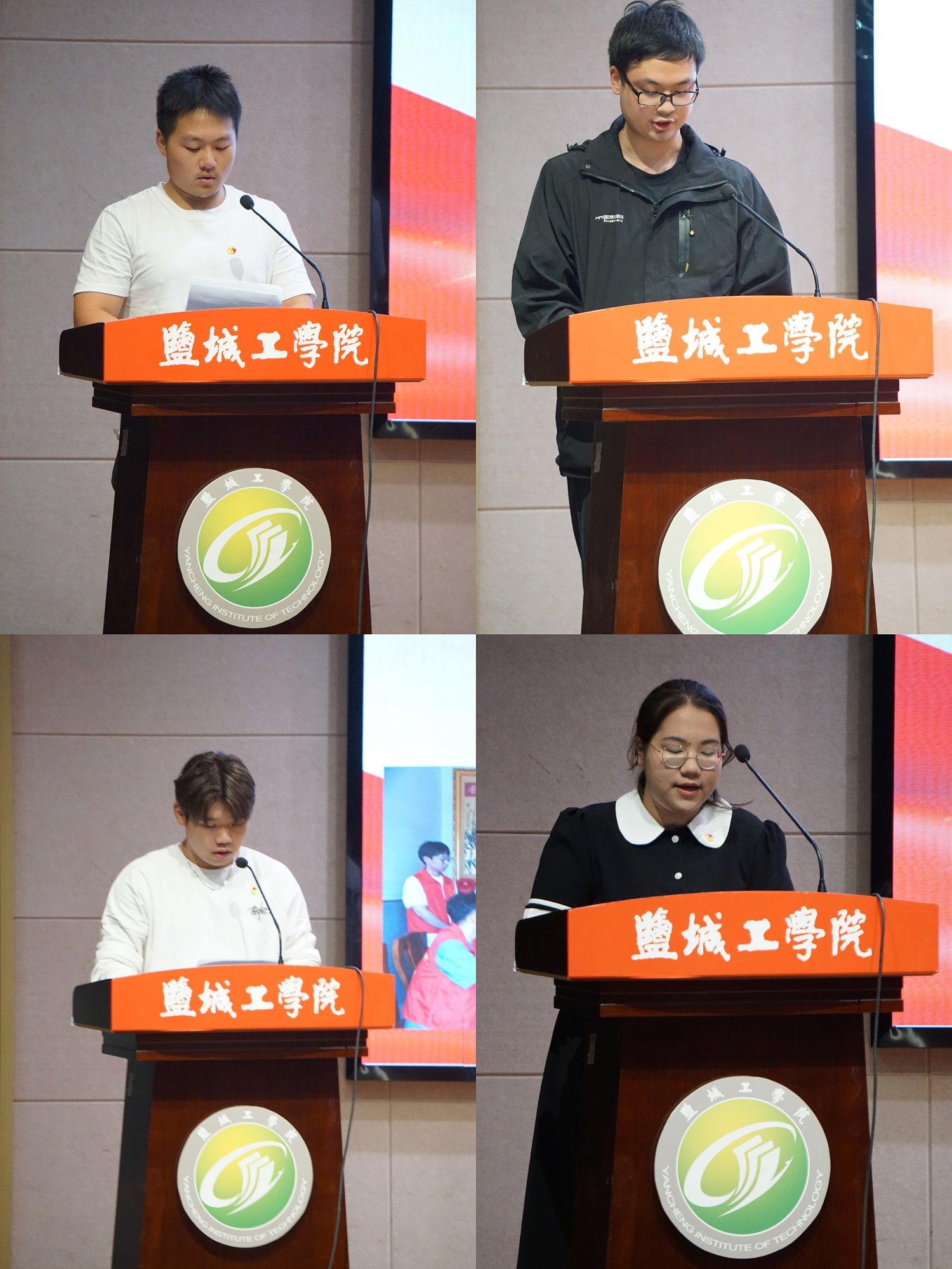 汇报会上,各实践团队负责人和分散实践的优秀代表分别上台发言,采用PPT讲演的方式,以生动的影像、丰富的图片和精心准备的汇报内容分享了实践成果,一起回顾了社会实践的精彩瞬间。“讲好‘柳堡故事’,赓续红色血脉”实践团队前往扬州市宝应县柳堡镇“二妹子”模范民兵活动中心和夏凤山烈士纪念馆参观学习,重温党的光辉历史与光荣传统,接受老一辈革命先烈的精神洗礼,并走进希望私塾和退役老兵家中开展志愿服务工作。“科技赋能农业生产,青春融入乡村振兴”实践团队赴大丰区三龙镇开展支农服务,团队成员使用学院党建联盟共建单位江动集团捐赠的零件,现场装配发动机和水泵,装配过程中认真讲解部分零部件的功能,并向参与活动的农技人员普及了发动机和水泵的基本养护和维修的要点。分散实践的各位优秀代表实践内容丰富、形式多样,包括“敬老爱老”志愿服务、参与社区反诈宣传和环境保护工作、汽车修理中心实习等。