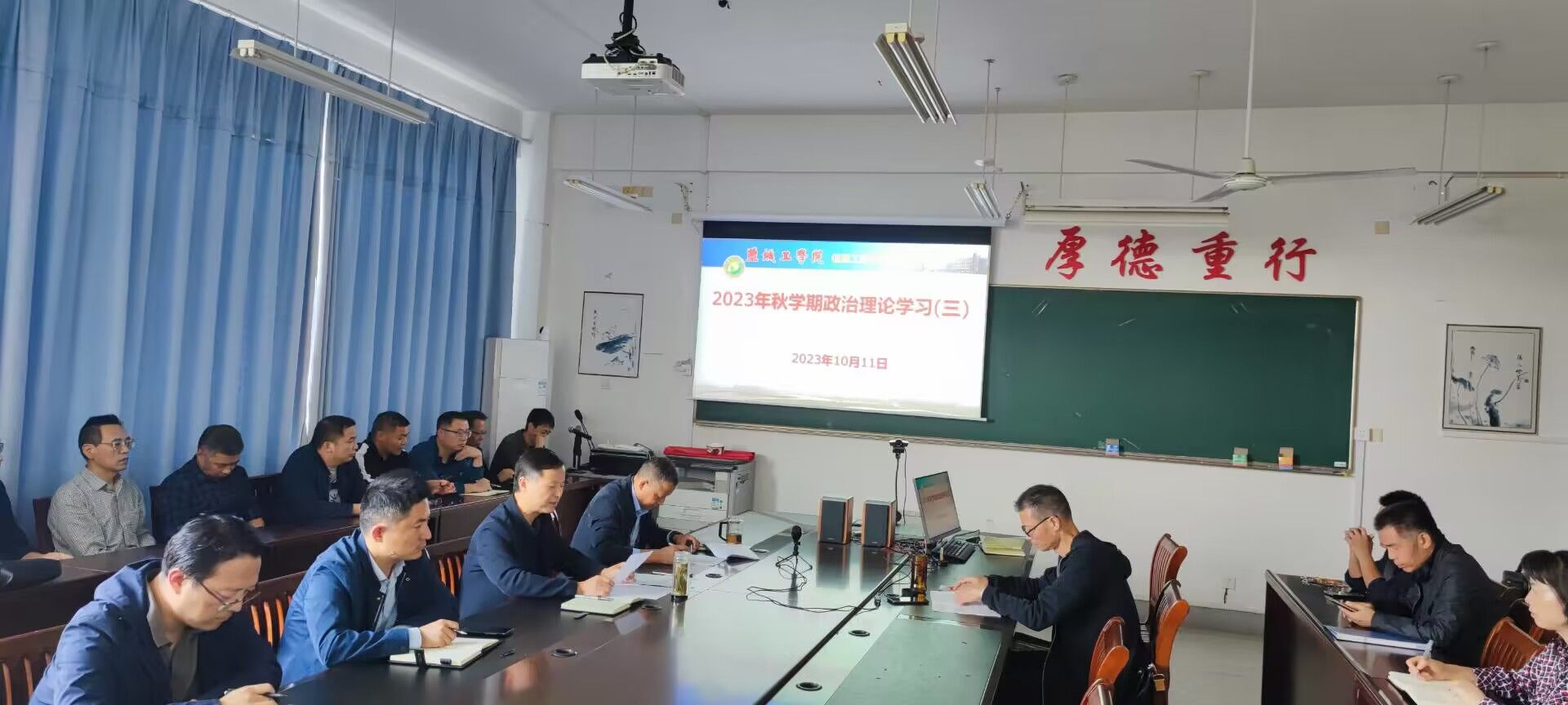 学习活动中,王爱军组织教职工学习了意识形态工作相关制度,传达学校关于做好意识形态工作的相关要求,并对做好学院意识形态工作作了部署。他要求大家坚持常态化、具体化、全员化,有高度、有广度地做好思想宣传、引导和教育,深入开展师生思想政治工作。