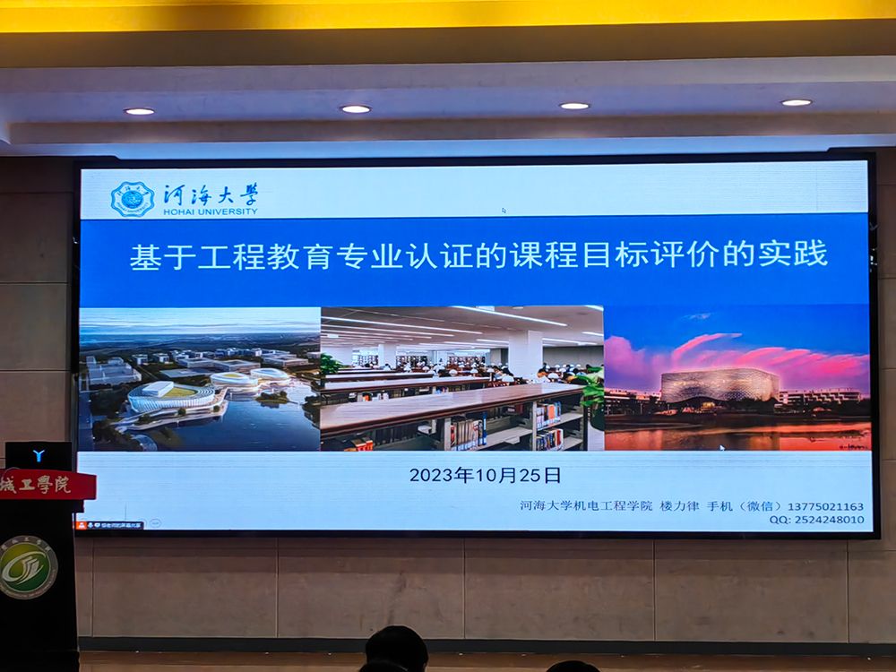 10月25日下午,在机械馆报告厅,机械优集学院特邀河海大学教学督导楼力律,作了题为“基于工程教育专业认证的课程目标评价的实践”的线上培训讲座。学院党委书记徐子连、院长周临震和全体教师参加了此次培训,讲座由副院长陈青主持。